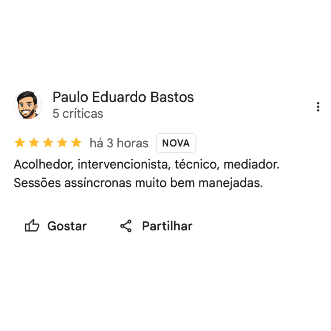 Atendo exclusivamente online, o que me permite oferecer psicoterapia para pessoas ao redor do mundo, com sessões individuais e personalizadas. Minha experiência inclui o trabalho com questões relacionadas à ansiedade, depressão, estresse, autoestima, luto, adaptação a mudanças e desafios da vida adulta e do envelhecimento. Para idosos, valorizo a escuta das trajetórias de vida, adaptando as técnicas da TCC ao ritmo e às necessidades dessa fase.